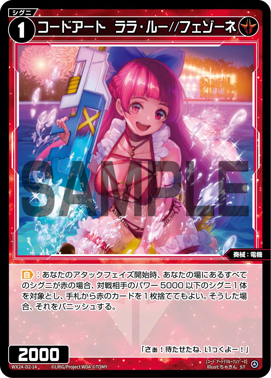 首頁 / WIXOSS / WX24-D2 / WX24-D2-14 コードアート ララ・ルー//フェゾーネ「紅色 精靈 奏械:電機 LV1 無LB」 WX24-D2-14 コードアート ララ・ルー//フェゾーネ「紅色 精靈 奏械:電機 LV1 無LB」$1.00 WX24-D2-14 コードアート ララ・ルー//フェゾーネ「紅色 精靈 奏械:電機 LV1 無LB」 數量 加入購物車 貨號: WX24-D2-14 分類: WX24-D2 描述 描述 「自」:我方攻擊階段開始時,我方場上所有精靈是紅色的話,對方1隻力量5000以下的精靈作對象,可以從手牌捨棄1張紅色卡牌。若如此做,將其破壞。 相關商品 WX24-D2-21 羅輝石 花代//メモリア「紅色 精靈 奏羅:寶石 LV2 無LB」 $1.00 加入購物車 WX24-D2-18 羅踊石 ガーネット「紅色 精靈 奏羅:寶石 LV2 有LB」 $1.00 加入購物車 WX24-D2-25 轟音の炎柱「紅色 魔法 有LB」 $1.00 加入購物車 WX24-D2-08 炎盾両面「紅色 必殺 攻擊階段 攻階」 $1.00 加入購物車
