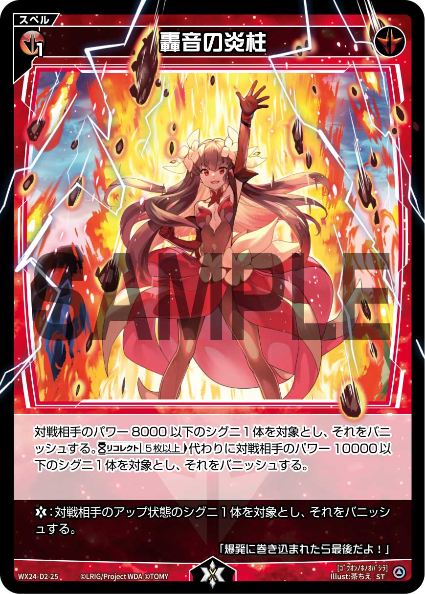 首頁 / WIXOSS / WX24-D2 / WX24-D2-25 轟音の炎柱「紅色 魔法 有LB」 WX24-D2-25 轟音の炎柱「紅色 魔法 有LB」$1.00 WX24-D2-25 轟音の炎柱「紅色 魔法 有LB」 數量 加入購物車 貨號: WX24-D2-25 分類: WX24-D2 描述 描述 對方1隻力量8000以下的精靈作對象,將其破壞。『追憶』5張以上>作為代替對方1隻力量10000以下的精靈作對象,將其破壞。 「LB」:對方1隻豎直狀態的精靈作對象,將其破壞。 相關商品 WX24-D2-16 紅魔 デカラビア「紅色 精靈 奏像:惡魔 LV2 有LB」 $1.00 加入購物車 WX24-D2-19 羅闘石 シルバン「紅色 精靈 奏羅:寶石 LV3 無LB」 $1.00 加入購物車 WX24-D2-14 コードアート ララ・ルー//フェゾーネ「紅色 精靈 奏械:電機 LV1 無LB」 $1.00 加入購物車 WX24-D2-04 百火繚乱 花代・参「紅色 分身 花代 LV3 」 $1.00 加入購物車