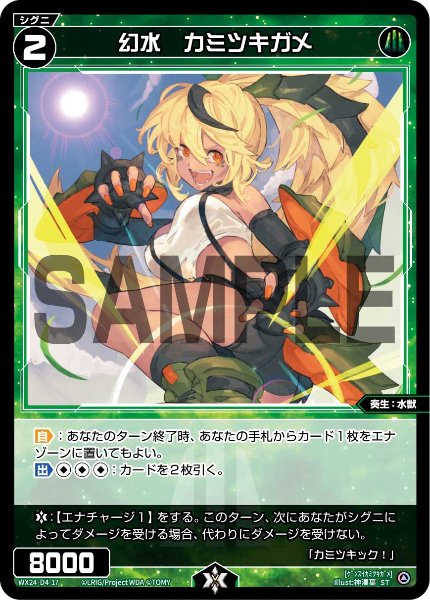 首頁 / WIXOSS / WX24-D4 / WX24-D4-17 幻水 カミツキガメ「綠色 精靈 奏生:水獸 LV2 有LB」 WX24-D4-17 幻水 カミツキガメ「綠色 精靈 奏生:水獸 LV2 有LB」$1.00 WX24-D4-17 幻水 カミツキガメ「綠色 精靈 奏生:水獸 LV2 有LB」 數量 加入購物車 貨號: WX24-D4-17 分類: WX24-D4 描述 描述 「自」:我方回合結束時,可以從我方手牌將1張卡牌放置到能量區。 「出」無3:抽2張牌。 「LB」:【能量填充1】。本回合中,下一次我方因精靈受到傷害的話,作為代替不會受到傷害。 相關商品 WX24-D4-07 付洋雷同「綠色 必殺 攻擊階段 攻階」 $1.00 加入購物車 WX24-D4-08 守破離「綠色 必殺 攻擊階段 攻階」 $1.00 加入購物車 WX24-D4-10 ミラクル・チャージング「無色 必殺 攻擊階段 攻階」 $1.00 加入購物車 WX24-D4-19 幻闘獣 ビグタット「綠色 精靈 奏生:地獸 LV3 無LB」 $1.00 加入購物車