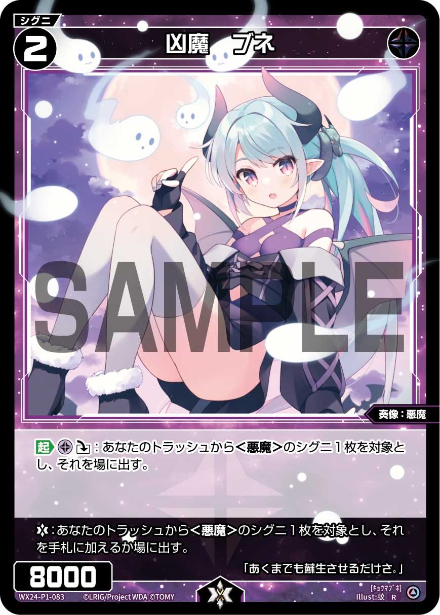 首頁 / WIXOSS / WX24-P1 / WX24-P1-083 凶魔 ブネ「黑色 精靈 奏像:惡魔 LV2 有LB」 WX24-P1-083 凶魔 ブネ「黑色 精靈 奏像:惡魔 LV2 有LB」$1.00 WX24-P1-083 凶魔 ブネ「黑色 精靈 奏像:惡魔 LV2 有LB」 數量 加入購物車 貨號: WX24-P1-083 分類: WX24-P1 描述 描述 「起」黑1(橫置):從我方廢棄區以1張<惡魔>精靈作對象,將其出場。 「LB」:從我方廢棄區以1張<惡魔>精靈作對象,將其加入手牌或出場。 相關商品 WX24-P1-023 ドンドン・バキューム「藍色 必殺 主要階段 主階 」 $1.00 加入購物車 WX24-P1-018 シャイニング・ソード「白色 必殺 攻擊階段 攻階 」 $1.00 加入購物車 WX24-P1-016 イノセント・フラッシュ「白色 必殺 主要階段 主階 」 $1.00 加入購物車 WX24-P1-009 ダーク・マイアズマ「黑色 必殺 LR 主要階段 主階 」 $1.00 加入購物車