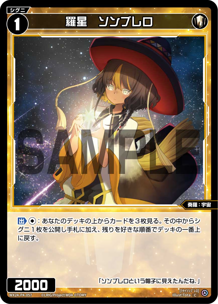 首頁 / WIXOSS / WX24-P4 / WX24-P4-057 羅星 ソンブレロ「 白色 精靈 奏羅:宇宙 LV1 無LB」 WX24-P4-057 羅星 ソンブレロ「 白色 精靈 奏羅:宇宙 LV1 無LB」$1.00 WX24-P4-057 羅星 ソンブレロ「 白色 精靈 奏羅:宇宙 LV1 無LB」 數量 加入購物車 貨號: WX24-P4-057 分類: WX24-P4 描述 描述 「出」無1:從我方牌組上方查看3張卡牌。將其中1張精靈公開並加入手牌,剩下的按任意順序放回牌姐上方。 相關商品 WX24-P4-011 過日の巫女 タマヨリヒメ「 白色 分身 タマ(小玉) LV4 」 $1.00 加入購物車 WX24-P4-019 エルドラ×マーク? FINAL「 藍色 分身 エルドラ(艾爾德拉) LV4 」 $1.00 加入購物車 WX24-P4-016 ちより 最終章「 紅色 分身 ちより(千依) LV4 」 $1.00 加入購物車 WX24-P4-012 進日の使途 小湊るう子「 白色 分身 るう子(露子) LV4 」 $1.00 加入購物車