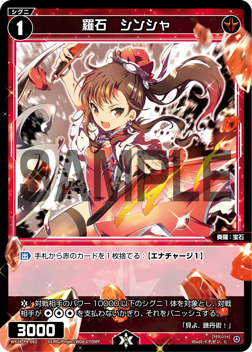 首頁 / WIXOSS / WX24-P4 / WX24-P4-062 羅石 シンシャ「 紅色 精靈 奏羅:寶石 LV1 有LB」 WX24-P4-062 羅石 シンシャ「 紅色 精靈 奏羅:寶石 LV1 有LB」$1.00 WX24-P4-062 羅石 シンシャ「 紅色 精靈 奏羅:寶石 LV1 有LB」 數量 加入購物車 貨號: WX24-P4-062 分類: WX24-P4 描述 描述 「出」:從手牌捨棄1張紅色卡牌:【能量填充1】 「LB」:對方1隻力量10000以下的精靈作對象,對方若不支付無3的話,則將其破壞。 相關商品 WX24-P4-009 落葉帰根「 綠色黑色 必殺 攻階 」 $1.00 加入購物車 WX24-P4-020 熾型心 緑姫「 綠色 分身 綠子 LV4 」 $1.00 加入購物車 WX24-P4-014 閃華繚乱 花代・肆「 紅色 分身 花代 LV4 」 $1.00 加入購物車 WX24-P4-016 ちより 最終章「 紅色 分身 ちより(千依) LV4 」 $1.00 加入購物車