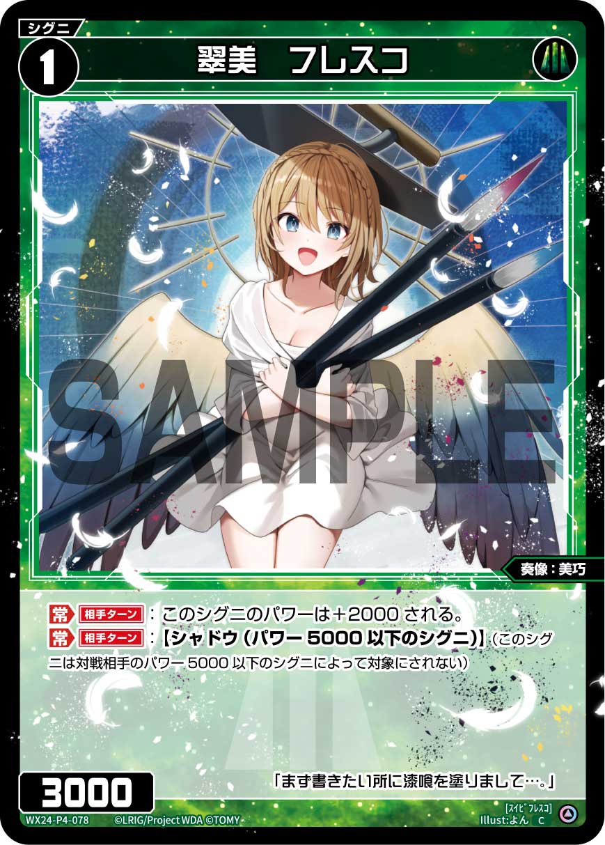 首頁 / WIXOSS / WX24-P4 / WX24-P4-078 翠美 フレスコ「 綠色 精靈 奏像:美巧 LV1 無LB」 WX24-P4-078 翠美 フレスコ「 綠色 精靈 奏像:美巧 LV1 無LB」$1.00 WX24-P4-078 翠美 フレスコ「 綠色 精靈 奏像:美巧 LV1 無LB」 數量 加入購物車 貨號: WX24-P4-078 分類: WX24-P4 描述 描述 「常」『對方回合』:此精靈力量+2000。 「常」『對方回合』:【暗影(力量5000以下的精靈)】 相關商品 WX24-P4-001 フレンドシップ・フレイム「 白色紅色 必殺 攻階 」 $1.00 加入購物車 WX24-P4-014 閃華繚乱 花代・肆「 紅色 分身 花代 LV4 」 $1.00 加入購物車 WX24-P4-019 エルドラ×マーク? FINAL「 藍色 分身 エルドラ(艾爾德拉) LV4 」 $1.00 加入購物車 WX24-P4-024 フォース/メイデン イオナ「 黑色 分身 イオナ(伊緒奈) LV4 」 $1.00 加入購物車