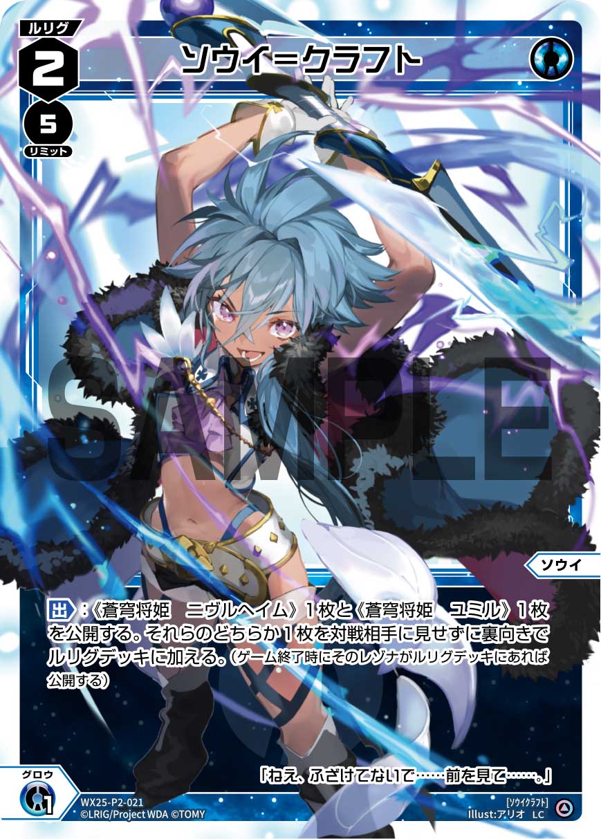 首頁 / WIXOSS / WX25-P2 / WX25-P2-021 ソウイ=クラフト「藍色 分身 ソウイ(索薇) LV2 」 WX25-P2-021 ソウイ=クラフト「藍色 分身 ソウイ(索薇) LV2 」$1.00 WX25-P2-021 ソウイ=クラフト「藍色 分身 ソウイ(索薇) LV2 」 數量 加入購物車 貨號: WX25-P2-021 分類: WX25-P2 描述 描述 「出」:公開1張《蒼穹将姫 ニヴルヘイム》和1張《蒼穹将姫 ユミル》。不給予對方查看下將其中1張以背向加入分身牌組。(遊戲結束時如該精靈在分身牌需將其公開) 相關商品 WX25-P2-002 ホワイト・ホール「白色 必殺 攻階 」 $1.00 加入購物車 WX25-P2-010 トライデント・サンダー「黑色 必殺 攻階 」 $1.00 加入購物車 WX25-P2-022 ソウイ=スリー「藍色 分身 ソウイ(索薇) LV3 」 $1.00 加入購物車 WX25-P2-003 走行車炎「紅色 必殺 主階 」 $1.00 加入購物車