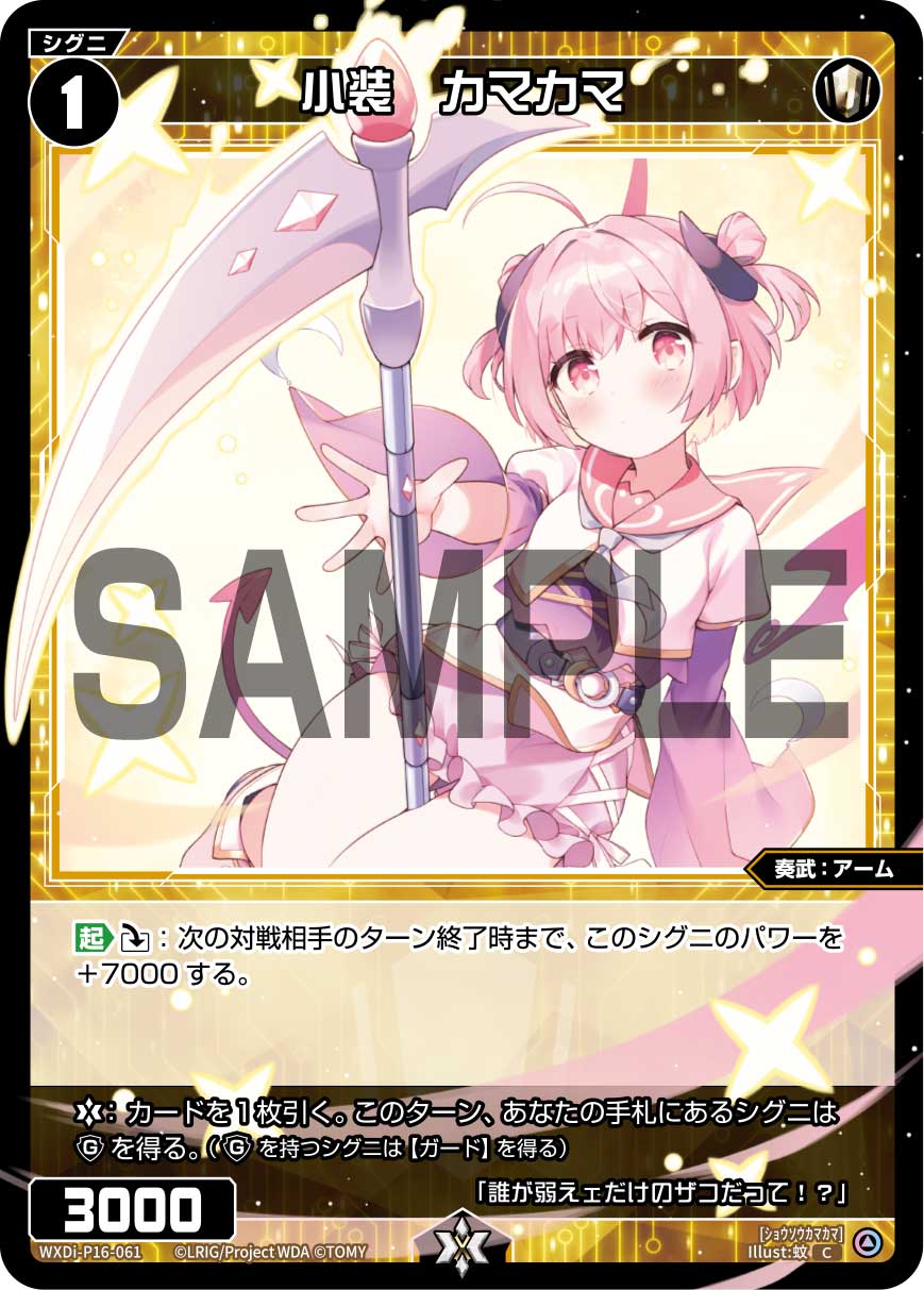 首頁 / WIXOSS / WXDi-P16 / WXDi-P16-061 小装 カマカマ「白色 精靈 奏武:アーム(武裝) LV1 有LB」 WXDi-P16-061 小装 カマカマ「白色 精靈 奏武:アーム(武裝) LV1 有LB」$1.00 WXDi-P16-061 小装 カマカマ「白色 精靈 奏武:アーム(武裝) LV1 有LB」 數量 加入購物車 貨號: WXDi-P16-061 分類: WXDi-P16 描述 描述 「起」(橫置):直到下一個對方回合結束時為止,此精靈的力量+7000。 「LB」:抽1張牌。本回合,我方手牌的精靈獲得防禦標記。(持有防禦標記的精靈獲得【防禦】) 相關商品 WXDi-P16-017 意思を紡ぐ ガブリエラ「白色 分身 ガブリエラ(加百列) LV0 」 $1.00 加入購物車 WXDi-P16-001A NEXT GATE「白色黑色 Piece 」 $1.00 加入購物車 WXDi-P16-002 D-(A)LIVE!!「紅色白色藍色 Piece 」 $1.00 加入購物車 WXDi-P16-014 永らえし者 タウィル=ノル「白色 分身 タウィル(塔維爾) LV0 」 $1.00 加入購物車