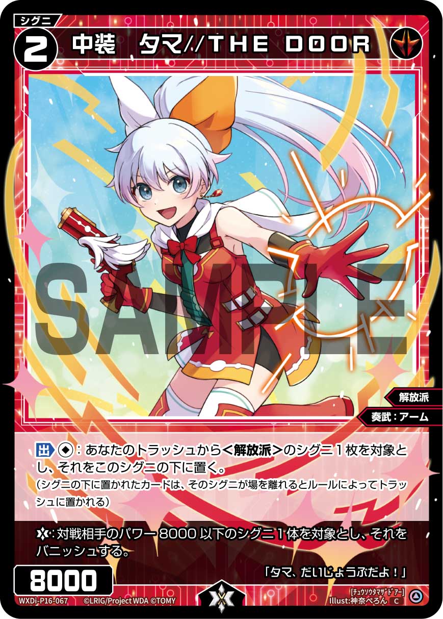 首頁 / WIXOSS / WXDi-P16 / WXDi-P16-067 中装 タマ//THE DOOR「紅色 精靈 解放派/奏武:アーム(武裝) LV2 有LB」 WXDi-P16-067 中装 タマ//THE DOOR「紅色 精靈 解放派/奏武:アーム(武裝) LV2 有LB」$1.00 WXDi-P16-067 中装 タマ//THE DOOR「紅色 精靈 解放派/奏武:アーム(武裝) LV2 有LB」 數量 加入購物車 貨號: WXDi-P16-067 分類: WXDi-P16 描述 描述 「出」無1:我方廢棄區1張<解放派>精靈作對象,將其放置到此精靈下方。 「LB」:對方1隻力量8000以下的精靈作對象,將其破壞。 相關商品 WXDi-P16-005 キラキラ・ブルー「藍色 Piece 」 $1.00 加入購物車 WXDi-P16-012 収斂せし扉 アト=トレ「綠色 分身 アト(亞托) LV3 」 $1.00 加入購物車 WXDi-P16-016 永らえし者 タウィル=トヴォ「白色 分身 タウィル(塔維爾) LV2 」 $1.00 加入購物車 WXDi-P16-009 導きを集う ガブリエラ「白色 分身 ガブリエラ(加百列) LV3 」 $1.00 加入購物車
