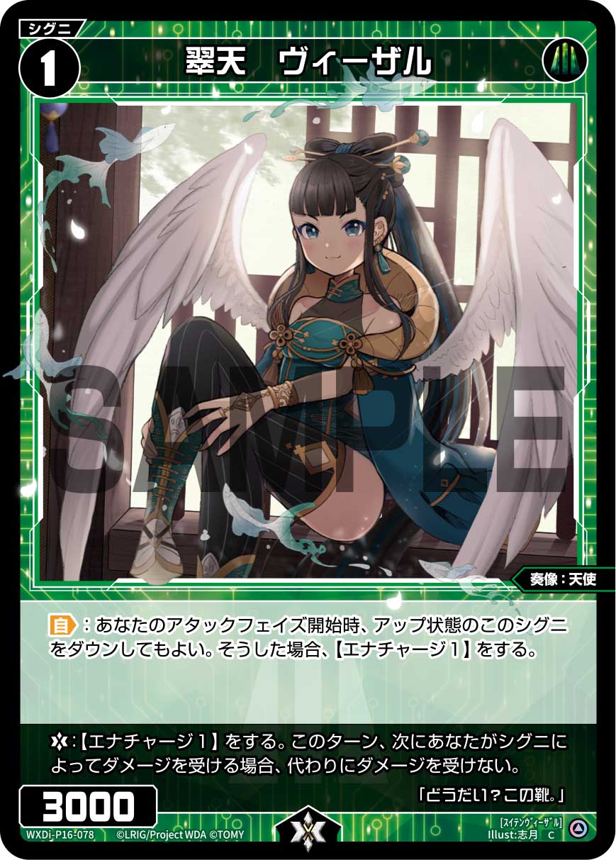 首頁 / WIXOSS / WXDi-P16 / WXDi-P16-078 翠天 ヴィーザル「綠色 精靈 奏像:天使 LV1 有LB」 WXDi-P16-078 翠天 ヴィーザル「綠色 精靈 奏像:天使 LV1 有LB」$1.00 WXDi-P16-078 翠天 ヴィーザル「綠色 精靈 奏像:天使 LV1 有LB」 數量 加入購物車 貨號: WXDi-P16-078 分類: WXDi-P16 描述 描述 「自」:我方攻擊階段開始時,可以橫置豎直狀態的此精靈。若如此做,【能量填充1】。 「LB」:【能量填充1】。本回合,下一次因精靈受到傷害的話,作為代替不會受到傷害。 相關商品 WXDi-P16-009 導きを集う ガブリエラ「白色 分身 ガブリエラ(加百列) LV3 」 $1.00 加入購物車 WXDi-P16-021 盤上へ煌く アザエラ「紅色 分身 アザエラ(阿薩斯) LV1 」 $1.00 加入購物車 WXDi-P16-006 深緑クッキング「綠色 Piece 」 $1.00 加入購物車 WXDi-P16-011 希望の後先 ミカエラ「藍色 分身 ミカエラ(米迦勒) LV3 」 $1.00 加入購物車