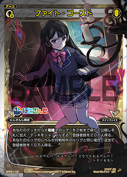 SPK21 SPK21-01 ハーベスト・フォース 收獲.力量 對方2隻精靈返回手牌。 Close SPK21-02 マスト・ハイド 必定.隱藏 直到回合結束時為止,對方1隻精靈獲得「不能攻擊」。 我方登錄人數達成70萬人的話,追加直到回合結束時為止,對方1隻精靈獲得「不能攻擊」。 我方登錄人數達成100萬人的話,追加直到回合結束時為止,對方1隻分身獲得「不能攻擊」。 Close SPK21-03 ファイト・ゴースト 戰鬥.幽靈 從我方牌組找最多2張<電機>精靈展示並加入手牌,洗切牌組。獲得登錄人數20萬。 我方分身等級與對方分身等級相同的話,追加獲得登錄人數10萬。 Close SPK21-04 レイズ・オブ・エッジ 喚起.刀刃 將對方1隻精靈放置到廢棄區。 Close SPK21-05 チャイルド・クッキー 兒童.曲奇 從以下2項中選擇1項。 ①從我方場上將1隻<電機>精靈放置到廢棄區。若如此做,對方將自己1隻精靈返回手牌。 ②【能量填充1】 Close 頁次: 1 2 3 4 5 6 7 8 9 10 11 12 13 14 15 16 17 18 19 20 21 22 23 24